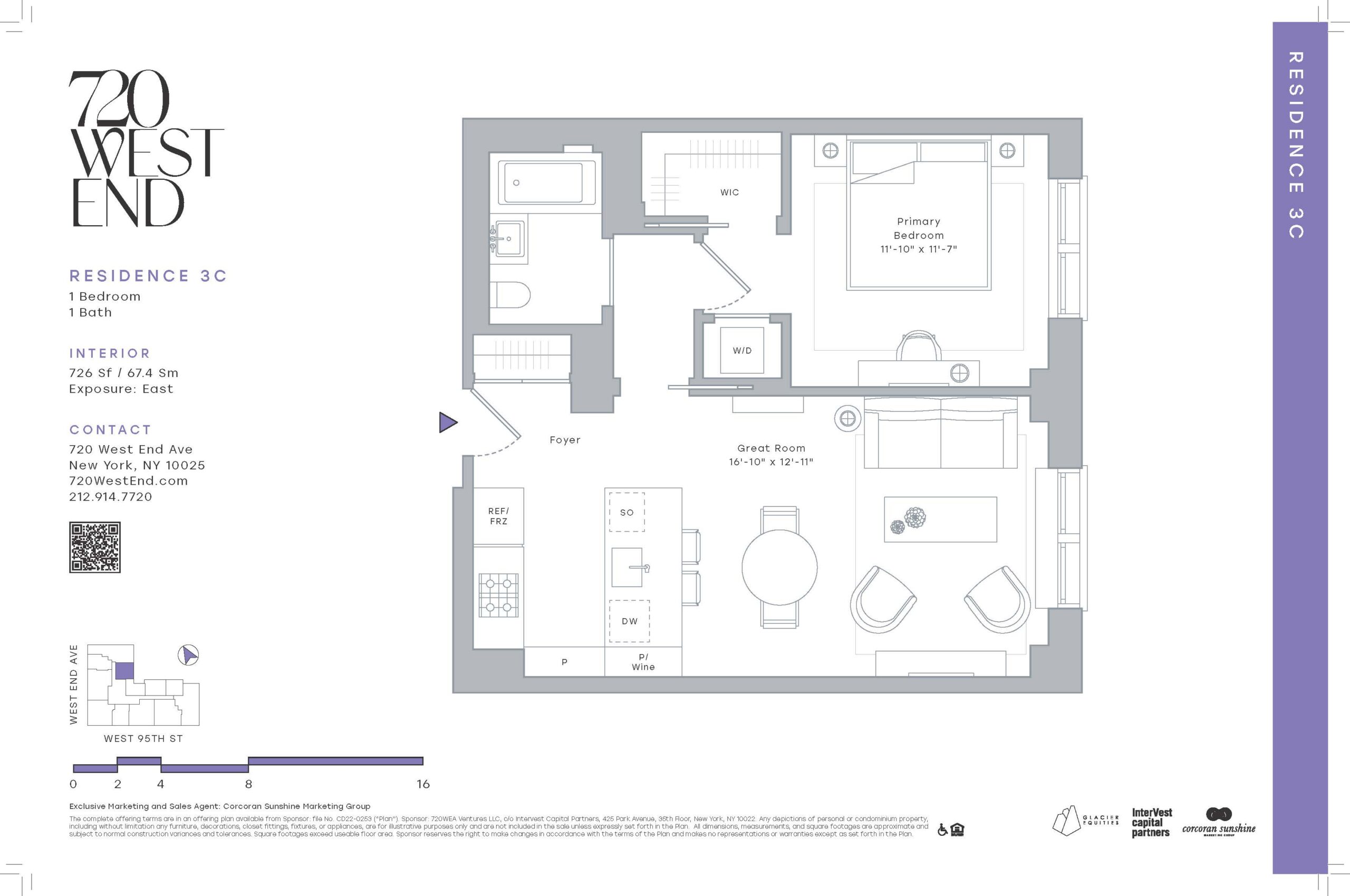 The complete offering terms are in an offering plan available from Sponsor (“Plan”). File No. CD22-0253. Sponsor: 720 WEA Ventures LLC, c/o Intervest Capital Partners, 425 Park Avenue, 35th Floor, New York, NY 10022. All computer and/or artist renderings reflect the planned scale and spirit of the building. All depictions of personal or condominium property (including without limitation any furniture, decorations, furnishings, fixtures, appliances, and landscaping) and the maturity of the growth of any landscaping are for illustrative purposes only. Where materials, equipment, finishes, fixtures, appliances, landscaping, and/or other construction or design details are displayed in the sales office or specified on marketing materials, Sponsor reserves the right to substitute in each instance one of comparable or better quality as recognized by industry standards for performance, efficiency, longevity, and/or classifications, as applicable, in accordance with the Plan. The names and uses of the amenity areas are subject to change in accordance with the Plan and may be subject to regulation and additional charges. Sponsor reserves the right to make changes in accordance with the terms of the Plan. Sponsor makes no representation that any future construction in the neighborhood surrounding the Condominium will not result in the obstruction of the views or light from any windows, amenity spaces, units, terraces, balconies, or other areas of the building. Sponsor makes no representation or warranty with respect to the content of third parties that may be linked to or referenced herein, and Sponsor shall have no liability with respect thereto. Sponsor makes no representations or warranties except as may be set forth in the Plan, as amended.